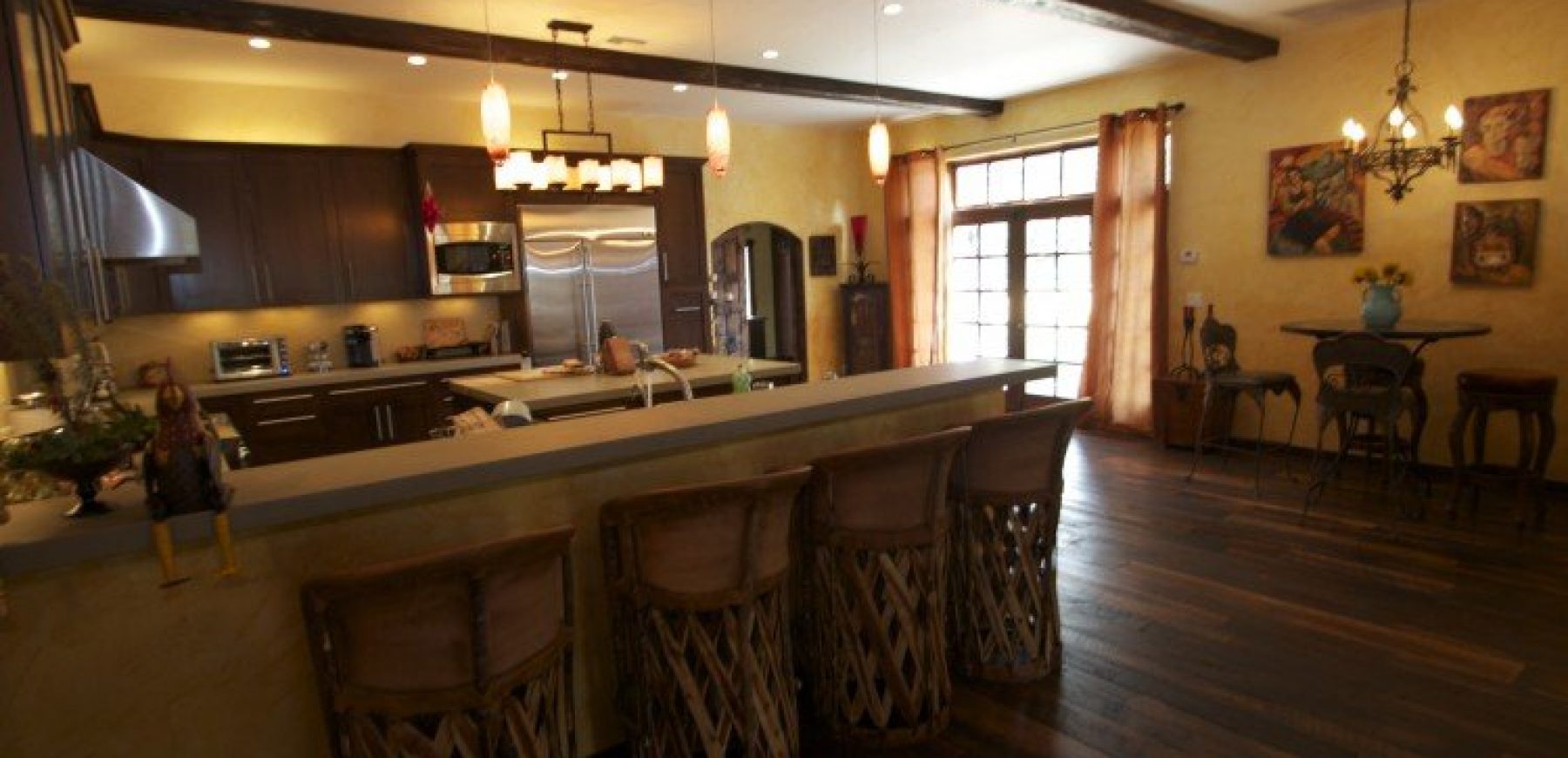 This unique and fantastically designed modern home features 5 bedrooms, 4.5 bathrooms, designer interiors, and a backyard with manicured lawn space, wood deck, large modern style pool, fire pit, and exterior lighting. All white interiors complete with modern furnishings as well as stone and wood accents create a clean and creative environment with a minimalist vibe.